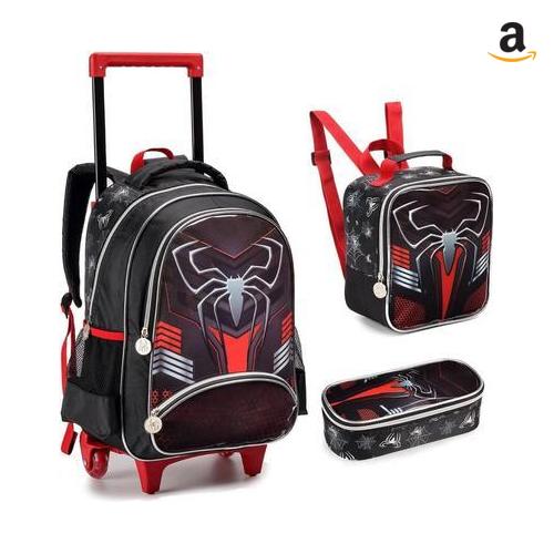 Kit Mochila Homem Aranha Dark Rodinhas – Spider Man Mochila Estojo Lancheira